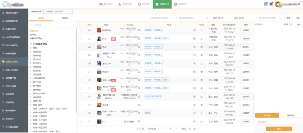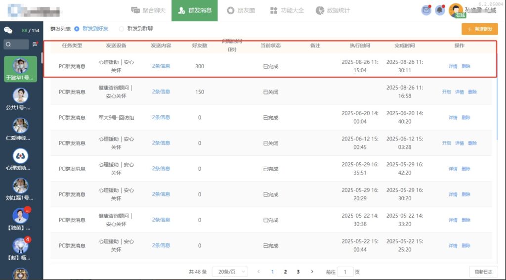 • 精準營銷觸達: 通過群發任務功能,高效地將心理輔導、安心關懷等信息推送給目標群體,優化了社群營銷效果 。
